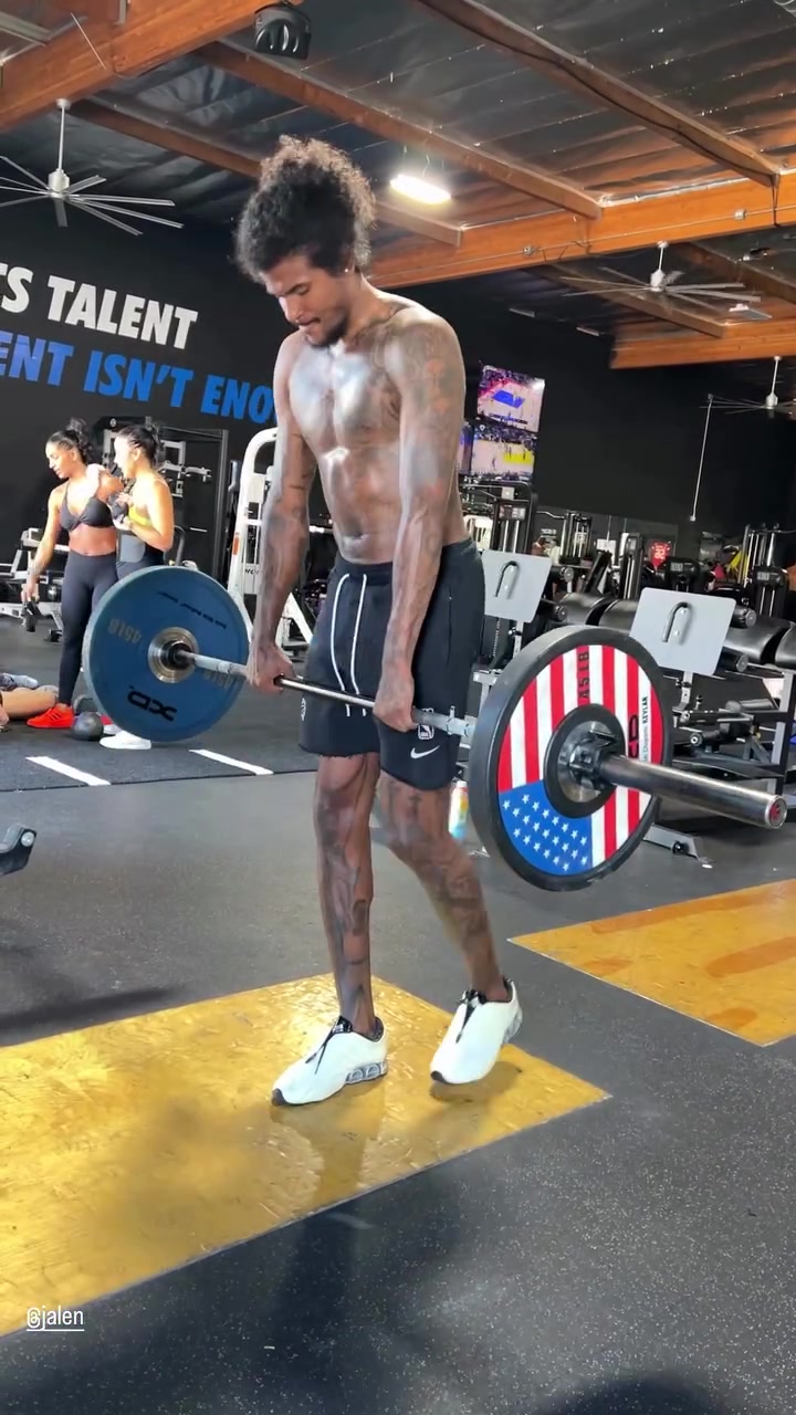 9月12日讯 今日洛杉矶一位健身教练Alexis Lawson晒出太阳球星杰伦-格林高难度训练照。
